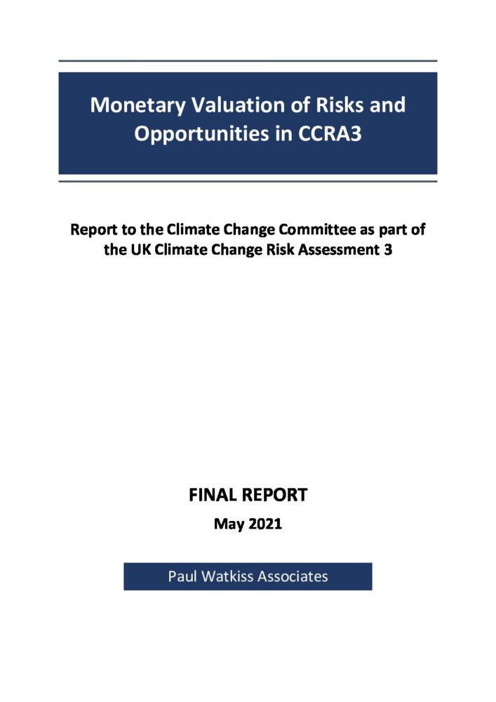 As part of the specification for CCRA3, the UK Government requested an analysis of the monetary valuation of risks and opportunities, as well as an analysis of the indicative costs and benefits of adaptation. The valuation analysis is summarised in this report, and feeds in to the magnitude scoring for the CCRA3 Technical Report.