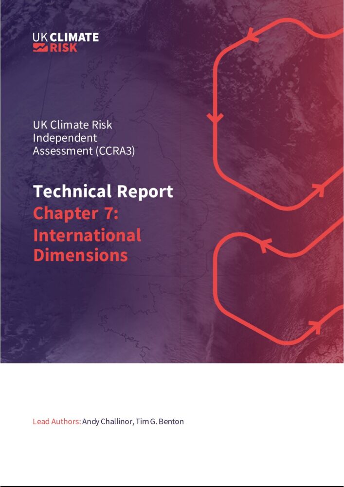 This chapter should be cited as: Challinor, A. and Benton, T. G. (2021) International dimensions. In: The Third UK Climate Change Risk Assessment Technical Report [Betts, R.A., Haward, A.B. and Pearson, K.V. (eds.)]. Prepared for the Climate Change Committee, London